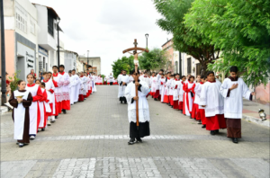 Em espírito jubilar, os coroinhas seguiram em caminhada peregrina até a Sé Catedral de Nossa Senhora da Conceição, expressando publicamente a alegria de servir e a dimensão missionária do Jubileu. A peregrinação simbolizou a caminhada de fé vivida diariamente nas paróquias e comunidades, unindo gerações em torno do serviço ao Senhor.