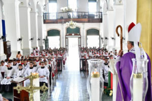 A programação foi concluída com a Santa Missa presidida pelo bispo diocesano, Dom José Luiz Gomes de Vasconcelos. Em sua homilia, o bispo destacou a importância do ministério dos coroinhas na liturgia e na vida da Igreja, ressaltando que o serviço ao altar é também uma escola de fé, disciplina, amor à Eucaristia e disponibilidade para Deus.