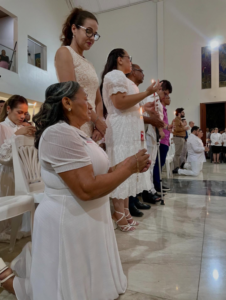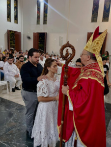 Na última sexta-feira, 5 de dezembro, Dom Vasconcelos presidiu a Santa Missa junto ao pároco, Padre Airton Liberato. Durante a celebração, cerca de 15 adultos receberam o Sacramento da Confirmação do Batismo, a Crisma. O momento marcou a vida de cada crismando e reforçou o compromisso de testemunhar a fé dentro da comunidade.