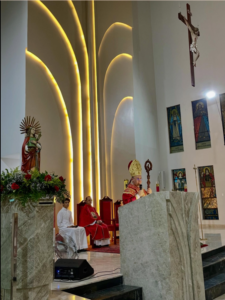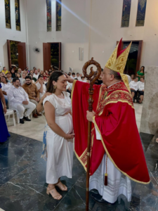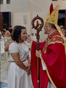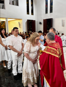 Na última sexta-feira, 5 de dezembro, Dom Vasconcelos presidiu a Santa Missa junto ao pároco, Padre Airton Liberato. Durante a celebração, cerca de 15 adultos receberam o Sacramento da Confirmação do Batismo, a Crisma. O momento marcou a vida de cada crismando e reforçou o compromisso de testemunhar a fé dentro da comunidade.