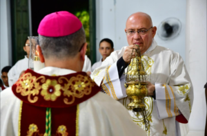 A solene celebração eucarística foi presidida pelo bispo diocesano, Dom Vasconcelos, e concelebrada pelos padres Berg, pároco da Paróquia da Sé e Cura da Catedral, Denilson de Sousa, reitor do Seminário Maior de Filosofia São João Paulo II, e Livandro Monteiro, da Comunidade Shalom. O momento expressou a unidade do clero e do povo de Deus em torno do mistério da Encarnação.